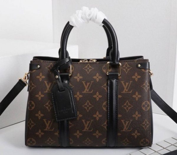 Monogram coated canvas with grained cowhide-leather gussets